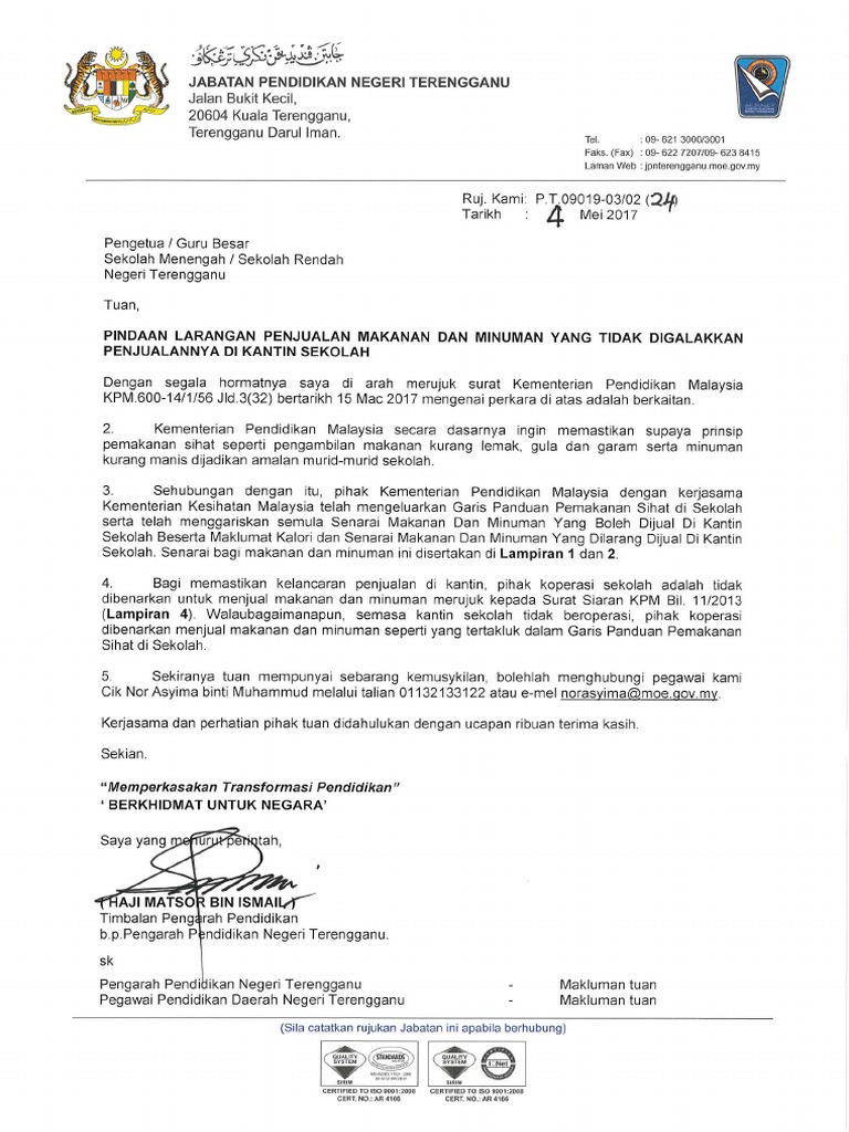 Surat Siaran Penjualan Makanan Dan Minuman Di Koperasi Sekolah
