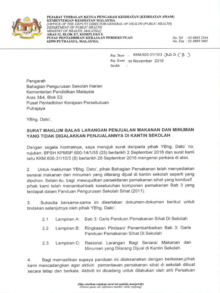 Di sesetengah sekolah mungkin hampir semua makanan kantin yang dilampir di sini tidak dijual lagi. Garis Panduan Pelaksanaan Pemakanan Sihat Di Sekolah 95 PeneranganRuangan Butiran 1 Daerah Catatkan nama daerah. Pertama 2011 dan Surat.